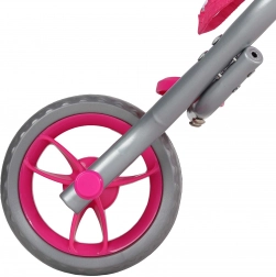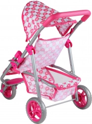 Leggero e stabile, il passeggino a tre ruote per bambole del marchio Woopie colpisce per il design rosa con cuoricini e la pratica dotazione per il gioco in casa e all’aperto. Dispone di capottina pieghevole, cinturini di sicurezza, manico in morbida schiuma e cestello inferiore per piccoli oggetti. Grazie alle ruote in schiuma silenziose si manovra facilmente e dopo il gioco si ripiega rapidamente per risparmiare spazio.