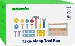 Una graziosa cassetta degli attrezzi in legno del marchio TOOKY TOY è ideale per i piccoli appassionati di fai-da-te a partire da 3 anni. Il set comprende 18 pezzi in colori pastello – martello, cacciavite, chiave, viti, dadi, ingranaggi e tavolette. I pezzi si fissano facilmente nei fori della cassetta e dopo il gioco si possono riporre comodamente all'interno. Realizzata in legno di qualità con vernici atossiche e pensata per sviluppare la motricità fine, la creatività e la coordinazione mano–occhio.