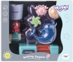 Il divertente giocattolo d'acqua da bagno WOOPIE trasforma ogni bagnetto in uno spettacolo. Versate l'acqua nel serbatoio superiore e osservate come il flusso passa attraverso il granchio, fa ruotare la stella marina, aziona il mulino ad acqua vicino al delfino e scorre dal rubinetto laterale. Grazie a 3 ventose aderisce saldamente alla vasca o alle piastrelle e aiuta a sviluppare la motricità fine, la concentrazione e l'immaginazione. Adatto dai 18 mesi.
