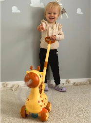 Cerchi un giocattolo che metta in movimento i bambini e allo stesso tempo li entusiasmi? La giraffa WOOPIE 2in1 unisce una macchina delle bolle a un deambulatore a spinta. Basta versare la soluzione nell’apposito serbatoio, accendere e guardare come le bolle colorate volano lontano grazie alla ventola integrata, mentre la giraffa riproduce una melodia e lampeggia con le lucine.