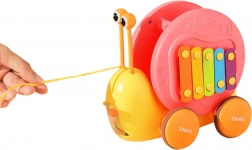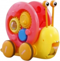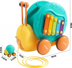 Giocattolo divertente ed educativo per i più piccoli: la colorata lumaca con cordicella unisce il gioco da trainare, lo xilofono con le “occhi” bacchette estraibili, ingranaggi/elementi sensoriali e una automobilina a lancio. Sostiene lo sviluppo della motricità, del pensiero logico e del rapporto con la musica grazie ai diversi modi di giocare.