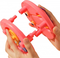 Premendo il pulsante sul dorso si apre la pista di lancio per la piccola automobilina: un ottimo modo per sviluppare la coordinazione mano-occhio e comprendere meccanismi semplici. La struttura resistente sopporta anche un uso poco delicato e, grazie al design studiato, il giocattolo è adatto al gioco in famiglia.