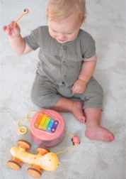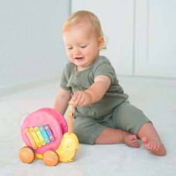 Con la lumaca WOOPIE i bambini scoprono il mondo della musica, del movimento e della relazione causa-effetto. Possono battere sui tasti colorati dello xilofono con gli occhi–bacchette estraibili, trainare la lumaca con la cordicella robusta oppure spingerla e osservare come parte. I colori vivaci e il design giocoso stimolano la percezione visiva e offrono lunghi minuti di divertimento creativo.