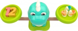 I pesetti numerici 1–10 corrispondono al numero di figure di dinosauri. I bambini vedono quando la bilancia è in equilibrio e comprendono intuitivamente addizione e sottrazione.