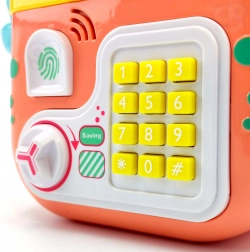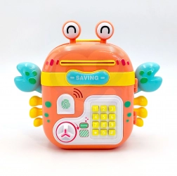 Questo colorato granchio è molto più di un salvadanaio: è una cassaforte interattiva, salvadanaio e zainetto per bambini in uno. I bambini possono riporvi monete, banconote e piccoli tesori, impostare una password e divertirsi con elementi realistici come la tastiera a pulsanti, l'imitazione del lettore di impronte e la manopola girevole per l'apertura.
