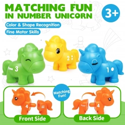 Giocattolo Educativo “Abbina i Numeri” trasporterà il tuo bambino nel magico mondo degli unicorni, dove potrà collegare le parti in base ai colori, ai numeri o alle forme. Questo gioco divertente e stimolante sviluppa abilità manuali, capacità di osservazione e pensiero logico del bambino.
