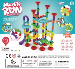 Costruisci il tuo mondo di biglie velocissime! Questo set colorato offre un'ampia gamma di forme e curve per creare piste a spirale e dinamiche. I pezzi si incastrano senza sforzo, così i bambini dai 3 anni possono costruire in autonomia o insieme ai genitori. Sul retro della confezione trovi uno schema di pista di esempio che utilizza tutti i componenti.