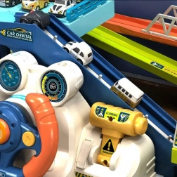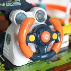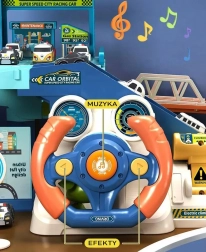 Il parcheggio garage Woopie offre ore infinite di divertimento per i bambini dai 3 anni in su. Include quattro macchinine di diversi colori, una pista da parcheggio e un volante interattivo. Può essere controllato manualmente o automaticamente tramite il volante. I bambini possono cambiare direzione, usare la barriera per fermare le auto e lanciare i veicoli sulla base fornita.