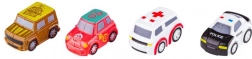 Il set comprende quattro macchinine dal design e colori diversi, come un Jeep, una classica auto, un'ambulanza e un'auto della polizia. Ogni auto ha un design unico per diverse situazioni di gioco.