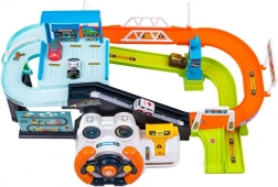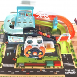 La pista colorata include rampe, ponti e aree di parcheggio. I bambini possono gareggiare con diverse macchinine e creare un'ampia varietà di scenari di gioco.