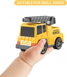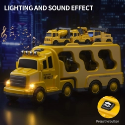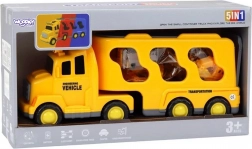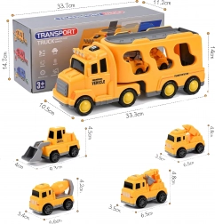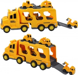 Scopri il variegato mondo dell’assistenza stradale e dei cantieri con il set WOOPIE. Il grande convoglio di trasporto giallo porta e ripone tutti i veicoli più piccoli: miniescavatore, betoniera, gru e bulldozer. Grazie al meccanismo a retrocarica, i mezzi più piccoli partono con una semplice spinta, mentre luci e suoni rendono il gioco ancora più realistico.