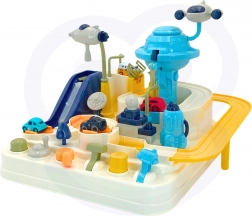 La pista interattiva in stile base spaziale trasforma ogni giorno in una missione emozionante. I bambini azionano manualmente i meccanismi, cambiano gli scambi e con il lanciatore mandano i veicoli in orbita. Grazie alla struttura robusta e ai bordi sicuri, il giocattolo è ideale per l’uso quotidiano e lo sviluppo delle abilità.
