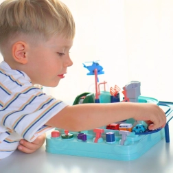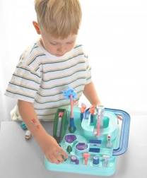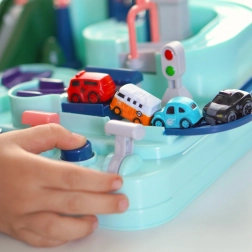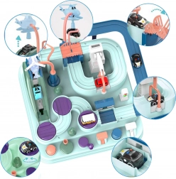 Grazie alla costruzione ben pensata e agli elementi variegati, il giocattolo offre momenti indimenticabili pieni di emozione e sfide. Uno strumento ideale per sviluppare l'immaginazione e abilità motorie fini, che fornisce anche tanto divertimento. La pista non offre solo possibilità di guidare, ma anche elementi interattivi, controllati da pulsanti e chiavi. Questo gioco emozionante richiede concentrazione e abilità.