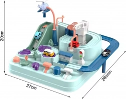 Il set include tre piccole auto, che possono liberamente esplorare la pista secondo la fantasia del piccolo giocatore. I veicoli rendono il gioco più interessante o permettono ai bambini di competere sulla pista. Il percorso attraverso la pista può sembrare facile, ma numerosi elementi come ingranaggi o ponté levatoio garantiranno che il percorso sia pieno di adrenalina.