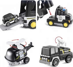 - Set di polizia in 5 pezzi: trasportatore + 4 veicoli di servizio