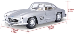 Modello in metallo della serie Bburago 1:24 Mercedes Benz 300SL argento.