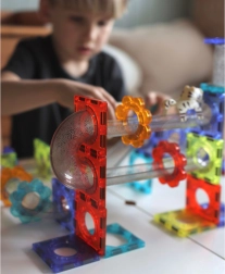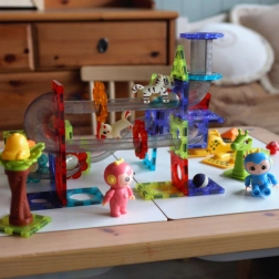 I componenti magnetici consentono un facile e stabile collegamento tra i vari elementi, offrendo ai bambini esperienze di costruzione diversificate.