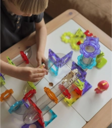 Il set di costruzioni magnetiche Pista Arcobaleno è adatto ai bambini dai 3 anni. Questo gioco offre infinite possibilità di costruzione, supporta lo sviluppo del pensiero logico, della creatività e delle abilità manuali.