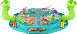 - 1× plancia di gioco con copertura e postazioni per dinosauri, 2× lanciatori, 24× palline in schiuma (gialle e arancioni), 16× miniature colorate di dinosauri, confezione regalo