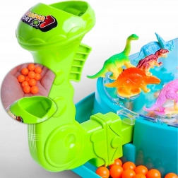 - Ricchi accessori – arena con copertura, 2 lanciatori, 24 palline e 16 miniature di dinosauri.