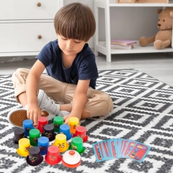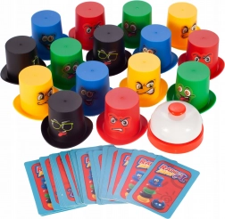 Principio del gioco: Ogni giocatore riceve 5 cappelli colorati e cerca di organizzarli il più rapidamente possibile secondo il modello sulla carta. Appena completi il compito, suona velocemente il campanello! Vince il giocatore con i migliori riflessi e attenzione.
