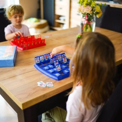 Mettetevi uno di fronte all’altro e, con domande intelligenti “sì/no”, scoprite quale personaggio ha scelto l’avversario. Ogni risposta vi aiuta a eliminare i volti sulla plancia: chiudete le relative finestrelle e arrivate per primi alla soluzione. Il gioco è rapido, intuitivo e ideale per bambini dai 5 anni.