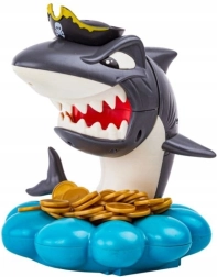 Lancia le monete d’oro nella base a forma di conchiglia, gira la ruota con la freccia ed estrai esattamente il numero di monete uscito. Ma attenzione – lo squalo protegge il suo tesoro pirata e può saltare fuori in qualsiasi momento. Chi fa scattare lo squalo perde. Regole semplici, tensione a ogni turno ed avvincenti effetti sonori lo rendono un gioco familiare ideale.