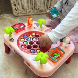 Divertente gioco interattivo per bambini dai 3 anni: tavolino da pesca rosa WOOPIE con pesciolini rotanti, melodie e cestini per i punti. Sviluppa la coordinazione occhio-mano, favorisce una sana competitività e diverte tutta la famiglia. Qualità costruttiva, colori bellissimi e montaggio semplice.