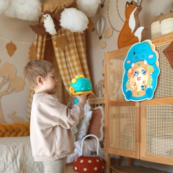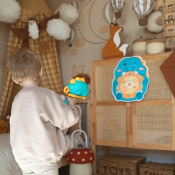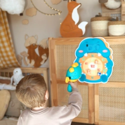 Trasforma la stanza in un campo di gioco con il bersaglio dinosauro e la pistola che spara morbide palline con velcro. Il bersaglio colorato con punteggio ben visibile motiva i bambini a tiri precisi, mentre la struttura leggera ed ergonomica della pistola assicura una presa comoda anche per le mani più piccole.