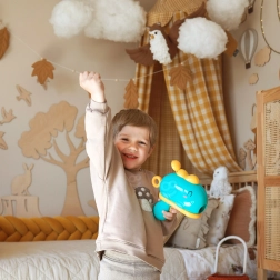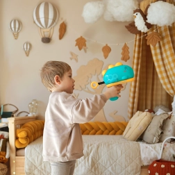 Un divertente gioco con un simpatico dinosauro del marchio WOOPIE offre tiri sicuri con morbide palline su un bersaglio colorato con punteggio. Basta mirare, premere il grilletto e centrare 100 punti! Blaster leggero, velcro per la sicurezza e facile utilizzo garantiscono tante risate, allenamento della coordinazione e competizione amichevole in casa e in giardino.