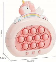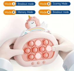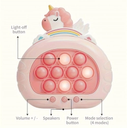 Il gioco elettrico Unicorno Pop It è un grande divertimento e strumento per lo sviluppo dei bambini dai tre anni. Sia bambini che adulti possono divertirsi a premere le bolle e partecipare a gare. Il gioco Pop It offre diverse modalità di gioco che sviluppano varie abilità: