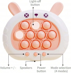 Il divertente e interattivo gioco POP IT Coniglietto porta piacere sia ai bambini che agli adulti. Sviluppa la mente, le abilità manuali, la coordinazione oculo-manuale e aiuta a combattere lo stress. Questo giocattolo offre quattro diverse modalità di gioco che mantengono tutti in suspense.
