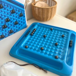 Disporre le biglie nella griglia allena precisione, pazienza e coordinazione occhio–mano. Gioco educativo ideale per bambini dai 9 anni e per adulti.