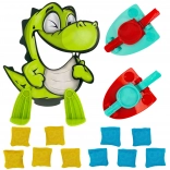 Il divertente gioco di famiglia Woopie Dinosauro Affamato porta duelli dinamici per due giocatori. Con i catapulti lanci morbidi sacchetti nella bocca del dinosauro – regole rapide, meccaniche semplici e tanto divertimento. Il gioco sviluppa alla grande la coordinazione mano-occhio, il colpo d’occhio e la precisione. Vince chi per primo si libera di tutti i propri sacchetti.