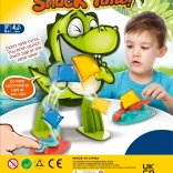 Il vistoso dinosauro verde è il fulcro del gioco e la zona di punteggio. Motiva i bambini a tentare più volte e migliorare la mira.