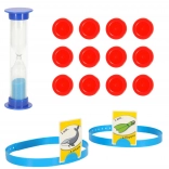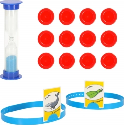 Le fascette resistenti tengono comodamente la carta sulla testa, la clessidra dà ritmo ai turni e i gettoni aiutano con il punteggio. Set ideale per una partita a due vivace e avvincente.