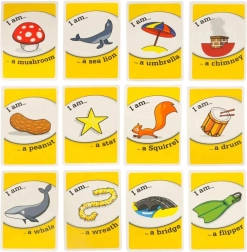 Le carte con semplici scritte in inglese favoriscono l’ampliamento del vocabolario e la comprensione. I bambini imparano in modo naturale mentre indovinano e fanno le domande giuste.