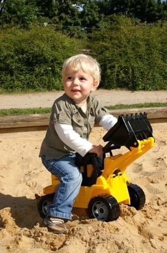 Caricatore per bambini Lena in finitura nero-gialla in plastica di alta qualità che soddisfa gli standard europei. Dotato di braccio mobile con paletta di carico, offre un grande divertimento per i bambini.