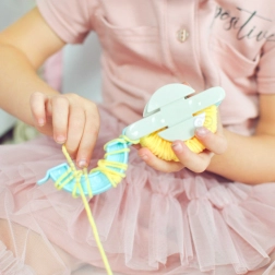 Il set include uno strumento speciale per creare i pompon, che garantisce una realizzazione rapida e semplice.