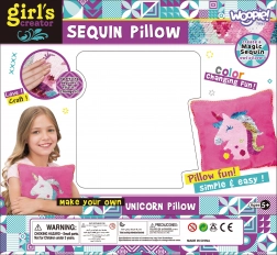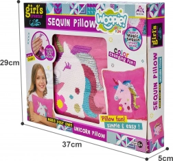 Contenuto della confezione: fodera per cuscino, imbottitura/cuscino, ago, filo, paillettes.