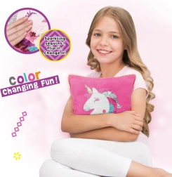 Scopri il mondo della moda e del fai‑da‑te con il set creativo Woopie ART&FUN. Il cucito è semplice anche per i principianti – bastano un po’ di immaginazione e pazienza. Grazie alle paillettes double face, il tuo cuscino unicorno brillerà e al passaggio della mano cambierà colore in modo magico. I materiali sono piacevoli al tatto e privi di spigoli vivi.