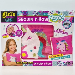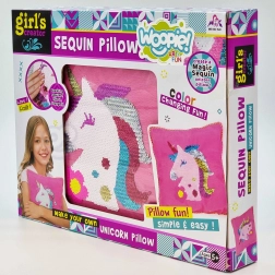 Il set creativo Woopie ART&FUN offre ai bambini un divertente cucito e decorazione di un cuscino con motivo unicorno. Nella confezione trovi tutto il necessario – fodera, cuscino, paillettes, ago e filo. Il cuscino finito ha un effetto magico: accarezzandolo cambia colore. Una scelta perfetta per sviluppare creatività, fantasia e motricità fine già dai 5 anni.
