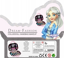 - 2 rossetti, 2 lucidalabbra, 2 smalti per unghie, 3 applicatori per ombretti, lima per unghie, divisore per unghie, unghie di ricambio, 2 fard, ombretti colorati