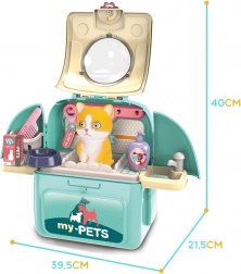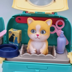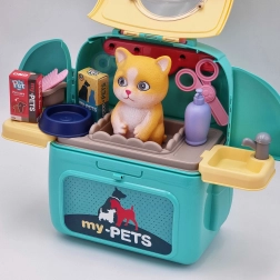Scopri il compatto set 2in1: un adorabile zainetto/trasportino con finestra e un mini salone di cura per l’animale all’interno. I bambini possono fare il bagnetto alla gattina nel lavello con rubinetto, pettinarla, rifinirla con le forbici e poi nutrirla con le ciotole. Lo sportello con chiusura e la tracolla removibile garantiscono un trasporto comodo e sicuro.