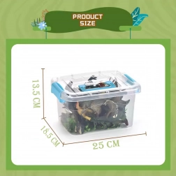 Contenuto della confezione: 12 figurine di dinosauri, 10 figurine di alberi/piante, morbido tappetino da gioco, valigetta portatile.