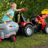 Il rimorchio cisterna Rolly Toys offre ai bambini la possibilità di riempire il serbatoio di acqua e, tramite lo spruzzatore e la pompa manuale, di annaffiare o pulire il giardino e il vialetto. Con una capacità di 30 litri fornisce abbastanza acqua per lunghe ore di gioco.