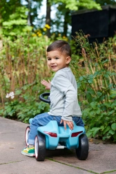 L'automobilina ha un aspetto moderno e futuristico nel colore turchese ed è realizzata in plastica resistente per un uso a lungo termine.