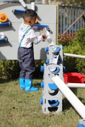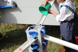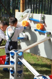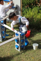 I bambini osservano il flusso, la gravità e la velocità dell’acqua, allenando logica e problem solving attraverso il gioco.