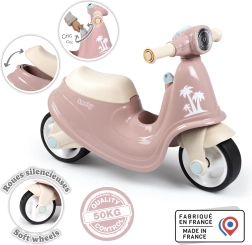 Monopattino rosa del rinomato marchio Smoby è un adorabile veicolo retrò su due ruote, ideale per i bambini piccoli. È un giocattolo educativo che favorisce l'equilibrio, la forza e la forma fisica del bambino.