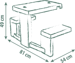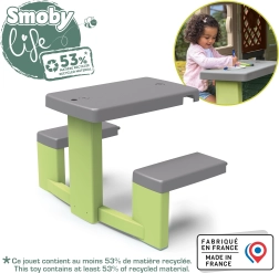 Il tavolino da picnic con panche è l’accessorio ideale per le casette per bambini, come Neo Jura Lodge, My New House, Chef House ed Evo Friends House. È progettato per offrire ai bambini uno spazio confortevole per giocare e riposarsi.